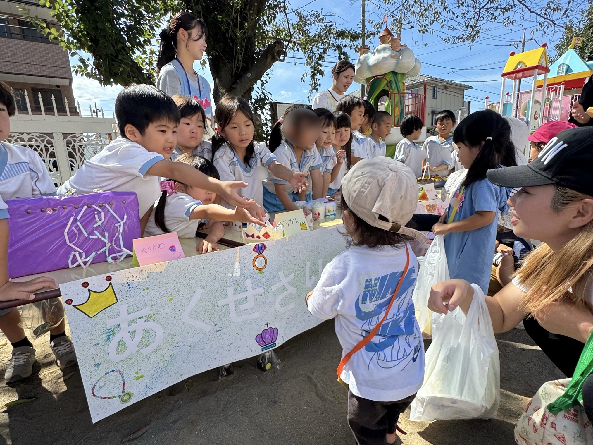 都幼稚園のお兄さん・お姉さんが作ったアクセサリーや食べ物(食べられません)などをお買い物できます。